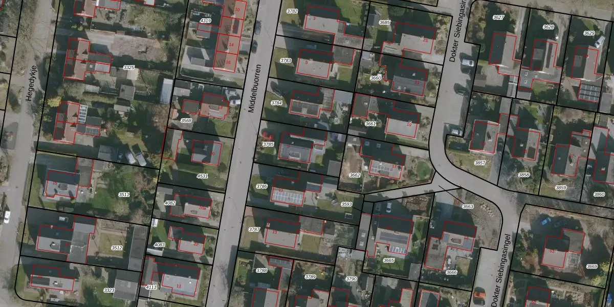 Het perceel waarop Middelbuorren 9 staat heeft een oppervlakte van 404 m². Dit is een groot perceel. De perceeloppervlakte wordt geregistreerd door het Kadaster. Gedetailleerde informatie over de maten van dit perceel kunt u vinden in het rapport Kadastrale kaart met maatvoering van Middelbuorren 9.