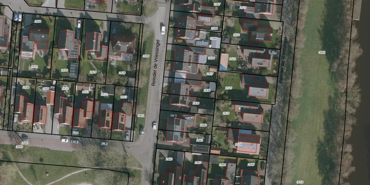 Reinder de Vriessingel 41 is gelegen op kadastraal perceel ODG00F2438. Deze kadastrale aanduiding is uniek en wordt gebruikt door het Kadaster om eigendomsrechten en andere zakelijke rechten vast te leggen. Het perceel maakt onderdeel uit van de kadastrale gemeente Oudega.