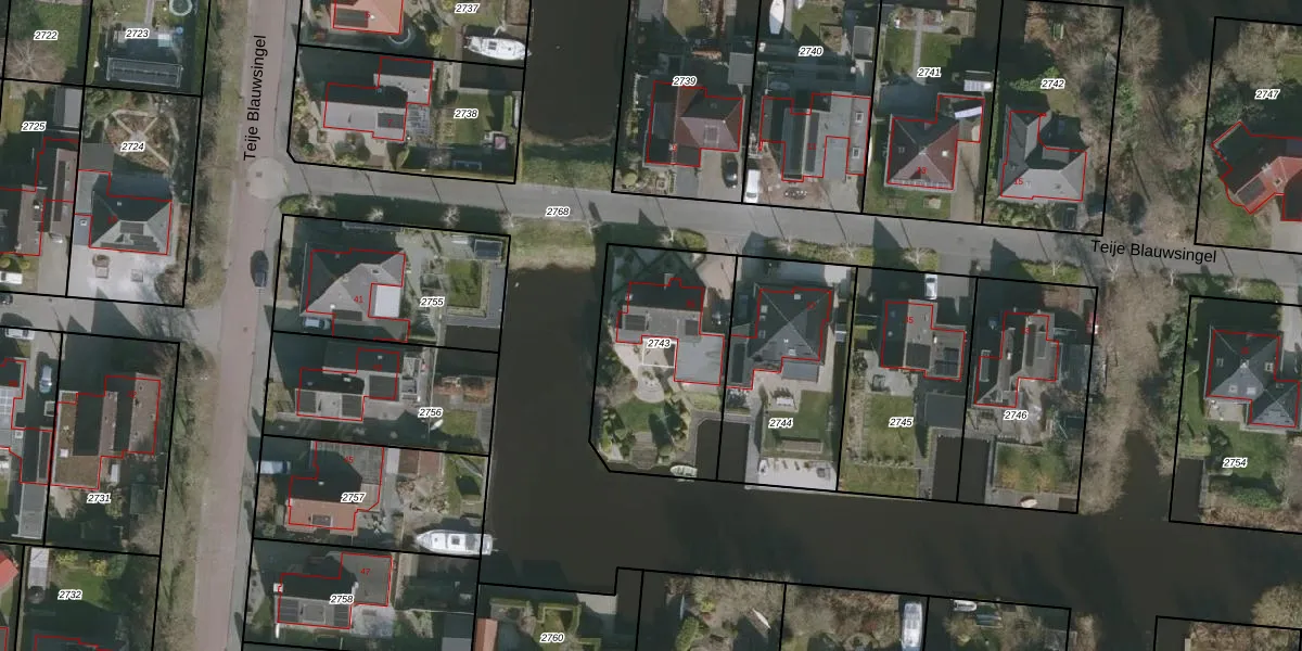 Teije Blauwsingel 39 is gelegen op kadastraal perceel ODG00F2743. Deze kadastrale aanduiding is uniek en wordt gebruikt door het Kadaster om eigendomsrechten en andere zakelijke rechten vast te leggen. Het perceel maakt onderdeel uit van de kadastrale gemeente Oudega.