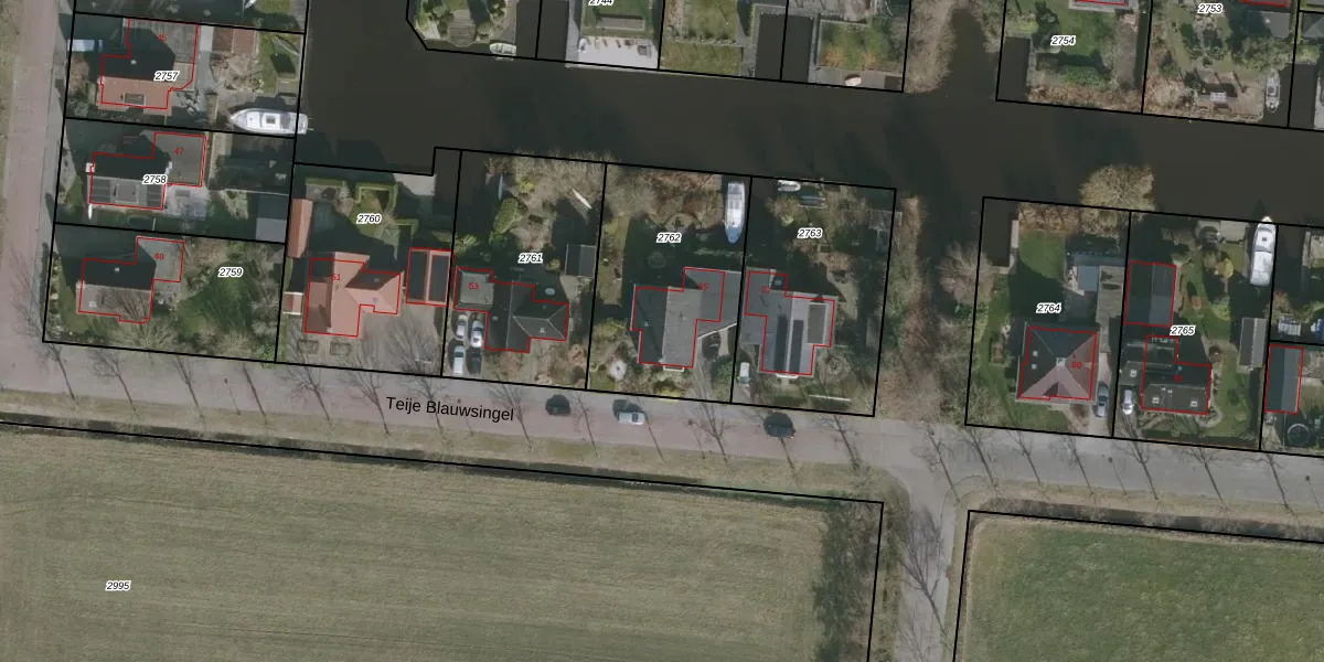 Teije Blauwsingel 55 is gelegen op kadastraal perceel ODG00F2762. Deze kadastrale aanduiding is uniek en wordt gebruikt door het Kadaster om eigendomsrechten en andere zakelijke rechten vast te leggen. Het perceel maakt onderdeel uit van de kadastrale gemeente Oudega.