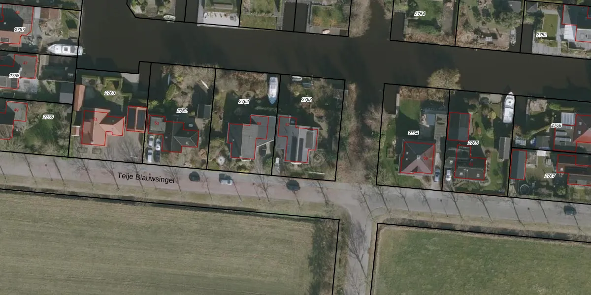 Teije Blauwsingel 57 is gelegen op kadastraal perceel ODG00F2763. Deze kadastrale aanduiding is uniek en wordt gebruikt door het Kadaster om eigendomsrechten en andere zakelijke rechten vast te leggen. Het perceel maakt onderdeel uit van de kadastrale gemeente Oudega.