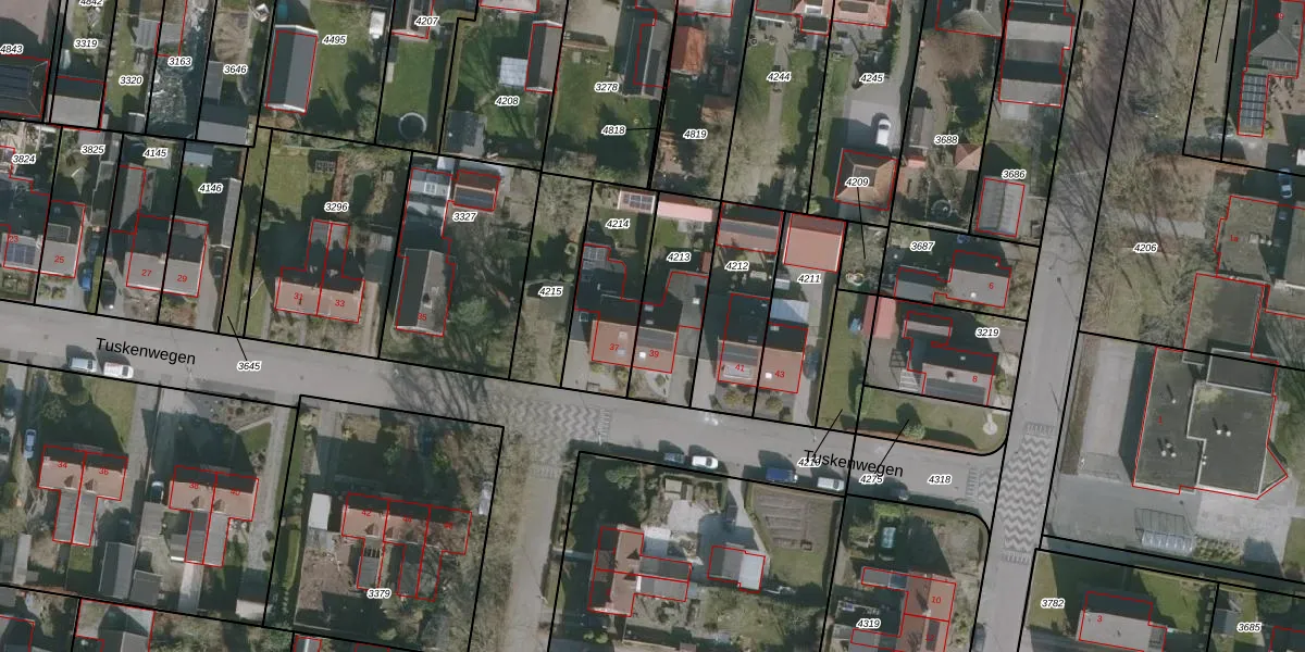Tuskenwegen 39 is gelegen op kadastraal perceel RTV00B4213. Deze kadastrale aanduiding is uniek en wordt gebruikt door het Kadaster om eigendomsrechten en andere zakelijke rechten vast te leggen. Het perceel maakt onderdeel uit van de kadastrale gemeente Rottevalle.