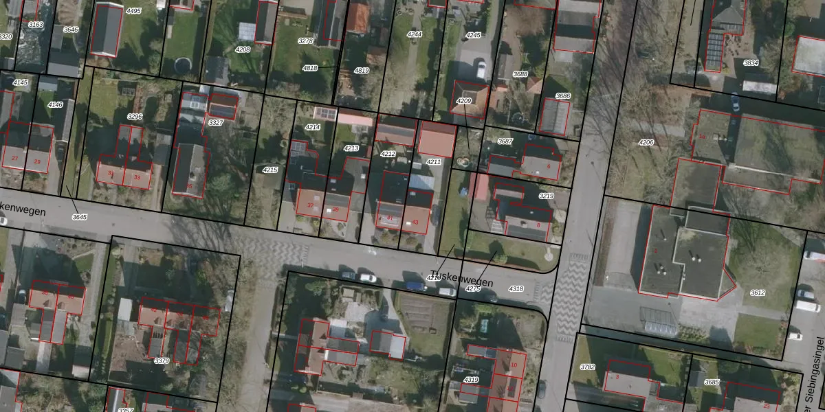 Tuskenwegen 43 is gelegen op kadastraal perceel RTV00B4211. Deze kadastrale aanduiding is uniek en wordt gebruikt door het Kadaster om eigendomsrechten en andere zakelijke rechten vast te leggen. Het perceel maakt onderdeel uit van de kadastrale gemeente Rottevalle.