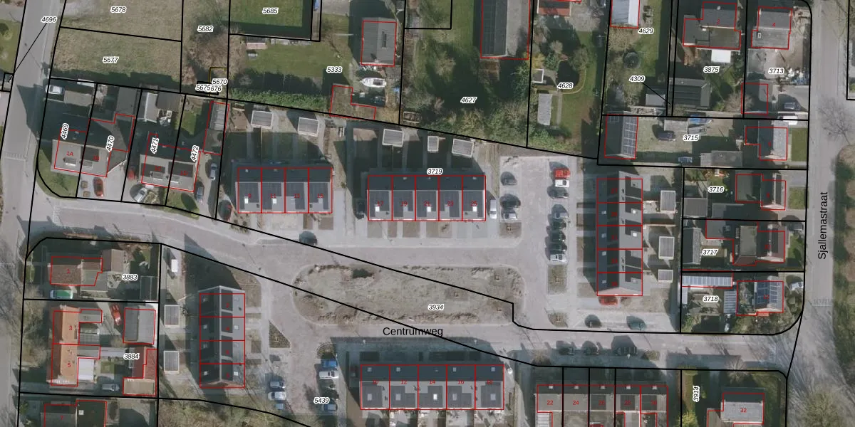 Het perceel waarop Centrumweg 21 staat heeft een oppervlakte van 3770 m². Dit is een zeer groot perceel. De perceeloppervlakte wordt geregistreerd door het Kadaster. Gedetailleerde informatie over de maten van dit perceel kunt u vinden in het rapport Kadastrale kaart met maatvoering van Centrumweg 21.