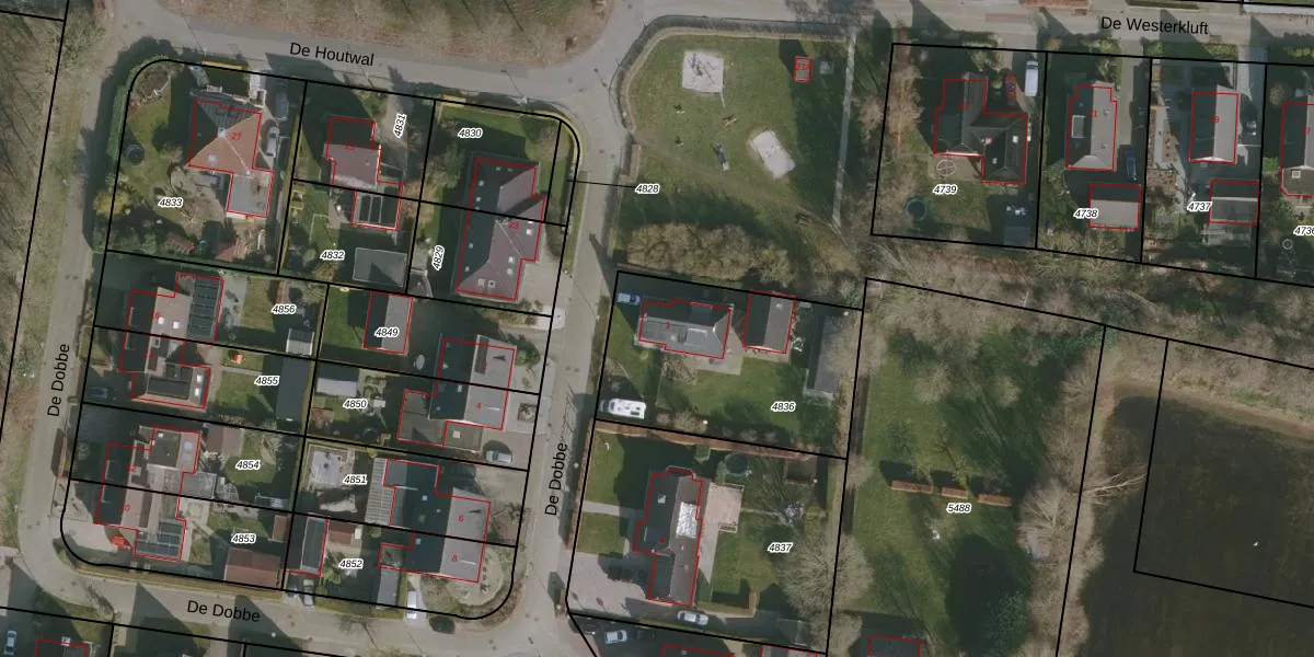 Het perceel waarop De Dobbe 1 staat heeft een oppervlakte van 873 m². Dit is een groot perceel. De perceeloppervlakte wordt geregistreerd door het Kadaster. Gedetailleerde informatie over de maten van dit perceel kunt u vinden in het rapport Kadastrale kaart met maatvoering van De Dobbe 1.