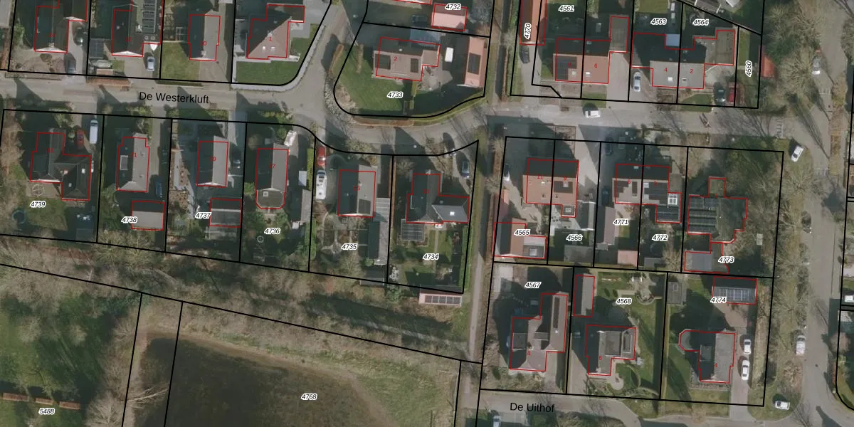 Het perceel waarop De Westerkluft 13 staat heeft een oppervlakte van 596 m². Dit is een groot perceel. De perceeloppervlakte wordt geregistreerd door het Kadaster. Gedetailleerde informatie over de maten van dit perceel kunt u vinden in het rapport Kadastrale kaart met maatvoering van De Westerkluft 13.