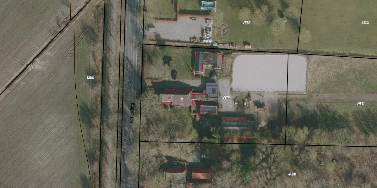 Scheiding 29 is gelegen op kadastraal perceel GTG00F3492. Deze kadastrale aanduiding is uniek en wordt gebruikt door het Kadaster om eigendomsrechten en andere zakelijke rechten vast te leggen. Het perceel maakt onderdeel uit van de kadastrale gemeente Grootegast.