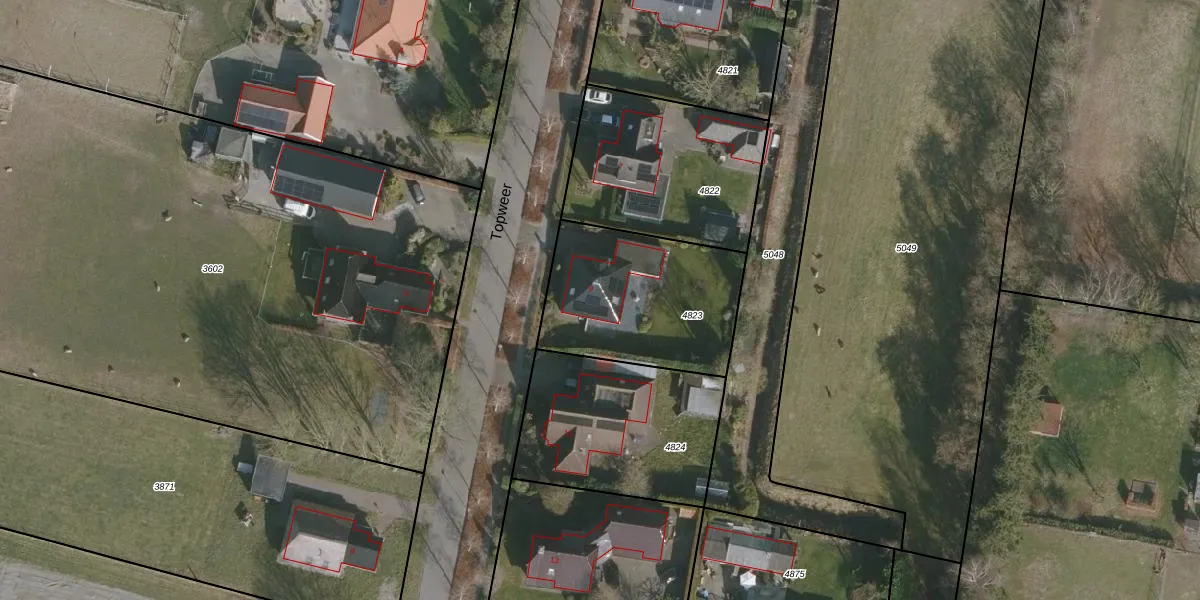 Het perceel waarop Topweer 9 staat heeft een oppervlakte van 689 m². Dit is een groot perceel. De perceeloppervlakte wordt geregistreerd door het Kadaster. Gedetailleerde informatie over de maten van dit perceel kunt u vinden in het rapport Kadastrale kaart met maatvoering van Topweer 9.