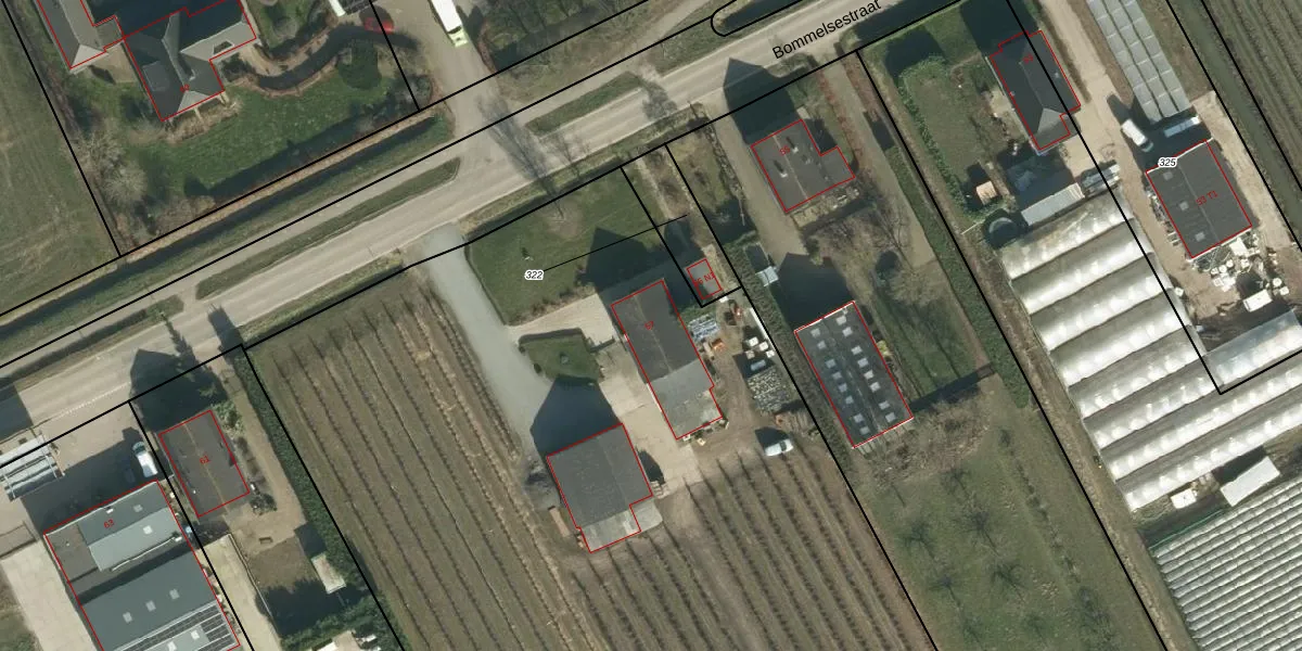 Het perceel waarop Bommelsestraat 57 staat heeft een oppervlakte van 3,6 ha. Dit is een zeer groot perceel. De perceeloppervlakte wordt geregistreerd door het Kadaster. Gedetailleerde informatie over de maten van dit perceel kunt u vinden in het rapport Kadastrale kaart met maatvoering van Bommelsestraat 57.
