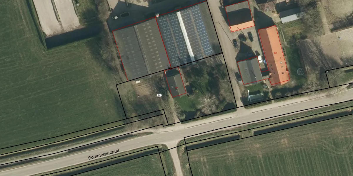 Het perceel waarop Bommelsestraat 84 staat heeft een oppervlakte van 1730 m². Dit is een zeer groot perceel. De perceeloppervlakte wordt geregistreerd door het Kadaster. Gedetailleerde informatie over de maten van dit perceel kunt u vinden in het rapport Kadastrale kaart met maatvoering van Bommelsestraat 84.