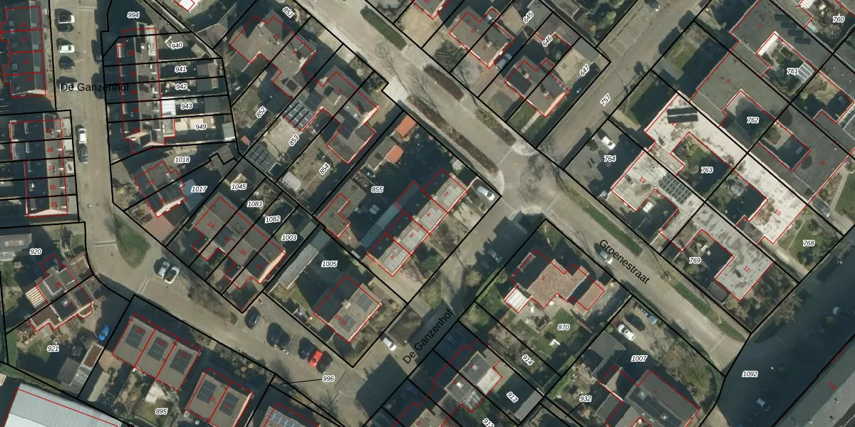 Het perceel waarop De Ganzenhof 4 staat heeft een oppervlakte van 1020 m². Dit is een zeer groot perceel. De perceeloppervlakte wordt geregistreerd door het Kadaster. Gedetailleerde informatie over de maten van dit perceel kunt u vinden in het rapport Kadastrale kaart met maatvoering van De Ganzenhof 4.