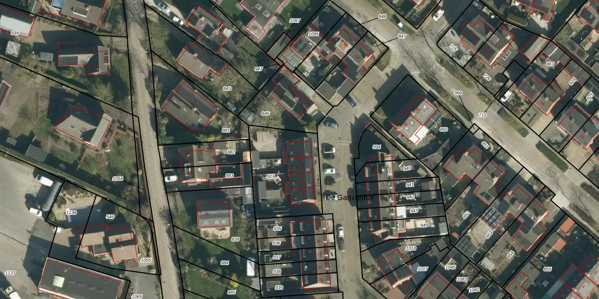 Het perceel waarop De Ganzenhof 49 staat heeft een oppervlakte van 645 m². Dit is een groot perceel. De perceeloppervlakte wordt geregistreerd door het Kadaster. Gedetailleerde informatie over de maten van dit perceel kunt u vinden in het rapport Kadastrale kaart met maatvoering van De Ganzenhof 49.