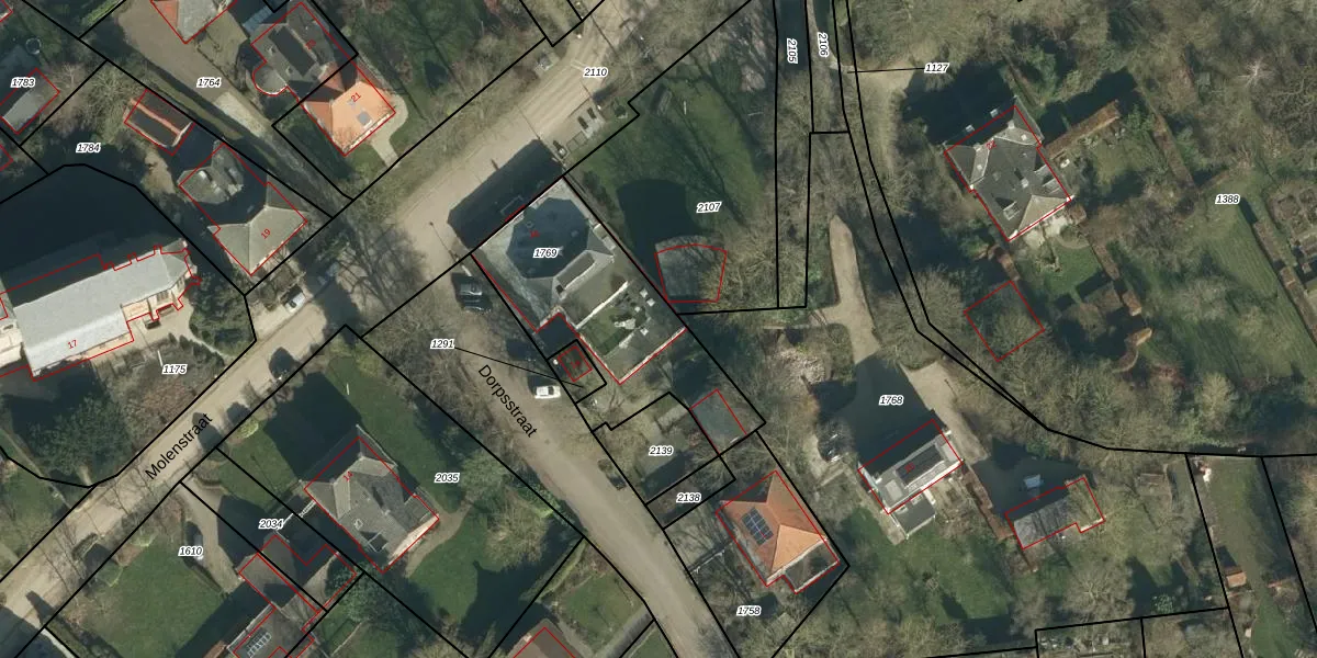 Het perceel waarop Dorpsstraat 1-c staat heeft een oppervlakte van 733 m². Dit is een groot perceel. De perceeloppervlakte wordt geregistreerd door het Kadaster. Gedetailleerde informatie over de maten van dit perceel kunt u vinden in het rapport Kadastrale kaart met maatvoering van Dorpsstraat 1-c.