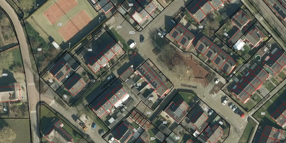 Het perceel waarop Odinstraat 11 staat heeft een oppervlakte van 1390 m². Dit is een zeer groot perceel. De perceeloppervlakte wordt geregistreerd door het Kadaster. Gedetailleerde informatie over de maten van dit perceel kunt u vinden in het rapport Kadastrale kaart met maatvoering van Odinstraat 11.