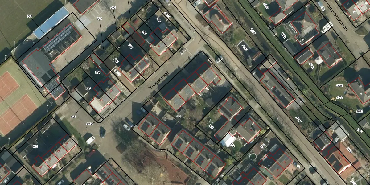 Het perceel waarop Yellowstraat 5 staat heeft een oppervlakte van 1993 m². Dit is een zeer groot perceel. De perceeloppervlakte wordt geregistreerd door het Kadaster. Gedetailleerde informatie over de maten van dit perceel kunt u vinden in het rapport Kadastrale kaart met maatvoering van Yellowstraat 5.