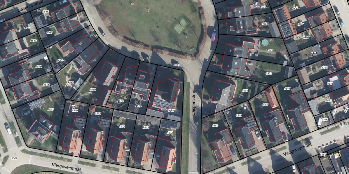 Het perceel waarop Caspersstraat 16 staat heeft een oppervlakte van 545 m². Dit is een groot perceel. De perceeloppervlakte wordt geregistreerd door het Kadaster. Gedetailleerde informatie over de maten van dit perceel kunt u vinden in het rapport Kadastrale kaart met maatvoering van Caspersstraat 16.