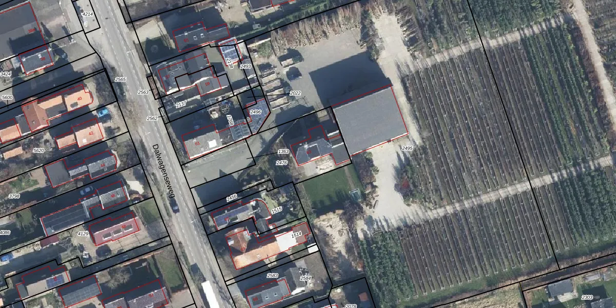 Dalwagenseweg 63 is gelegen op kadastraal perceel OHD00B2476. Deze kadastrale aanduiding is uniek en wordt gebruikt door het Kadaster om eigendomsrechten en andere zakelijke rechten vast te leggen. Het perceel maakt onderdeel uit van de kadastrale gemeente Opheusden.