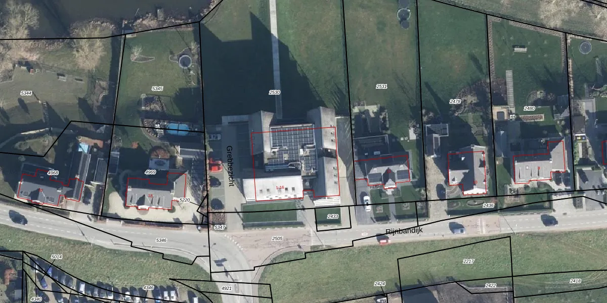 Het perceel waarop Grebbezicht 13 staat heeft een oppervlakte van 3852 m². Dit is een zeer groot perceel. De perceeloppervlakte wordt geregistreerd door het Kadaster. Gedetailleerde informatie over de maten van dit perceel kunt u vinden in het rapport Kadastrale kaart met maatvoering van Grebbezicht 13.