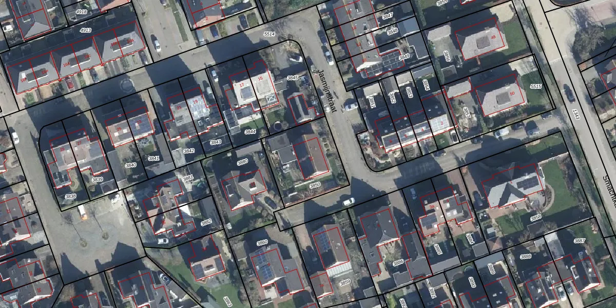 Het perceel waarop Jasmijnstraat 13 staat heeft een oppervlakte van 534 m². Dit is een groot perceel. De perceeloppervlakte wordt geregistreerd door het Kadaster. Gedetailleerde informatie over de maten van dit perceel kunt u vinden in het rapport Kadastrale kaart met maatvoering van Jasmijnstraat 13.