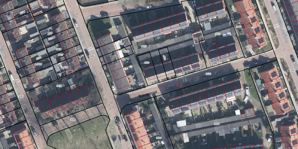 Gebruik de zoekbalk of klik op een perceel voor informatie over de adressen binnen dit perceel.
