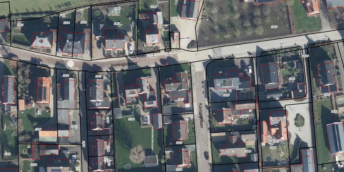Het perceel waarop Koningsstraat 12-a staat heeft een oppervlakte van 541 m². Dit is een groot perceel. De perceeloppervlakte wordt geregistreerd door het Kadaster. Gedetailleerde informatie over de maten van dit perceel kunt u vinden in het rapport Kadastrale kaart met maatvoering van Koningsstraat 12-a.