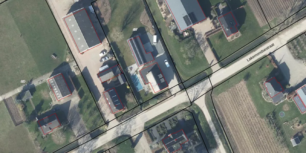 Het perceel waarop Lakemondsestraat 21 staat heeft een oppervlakte van 2345 m². Dit is een zeer groot perceel. De perceeloppervlakte wordt geregistreerd door het Kadaster. Gedetailleerde informatie over de maten van dit perceel kunt u vinden in het rapport Kadastrale kaart met maatvoering van Lakemondsestraat 21.