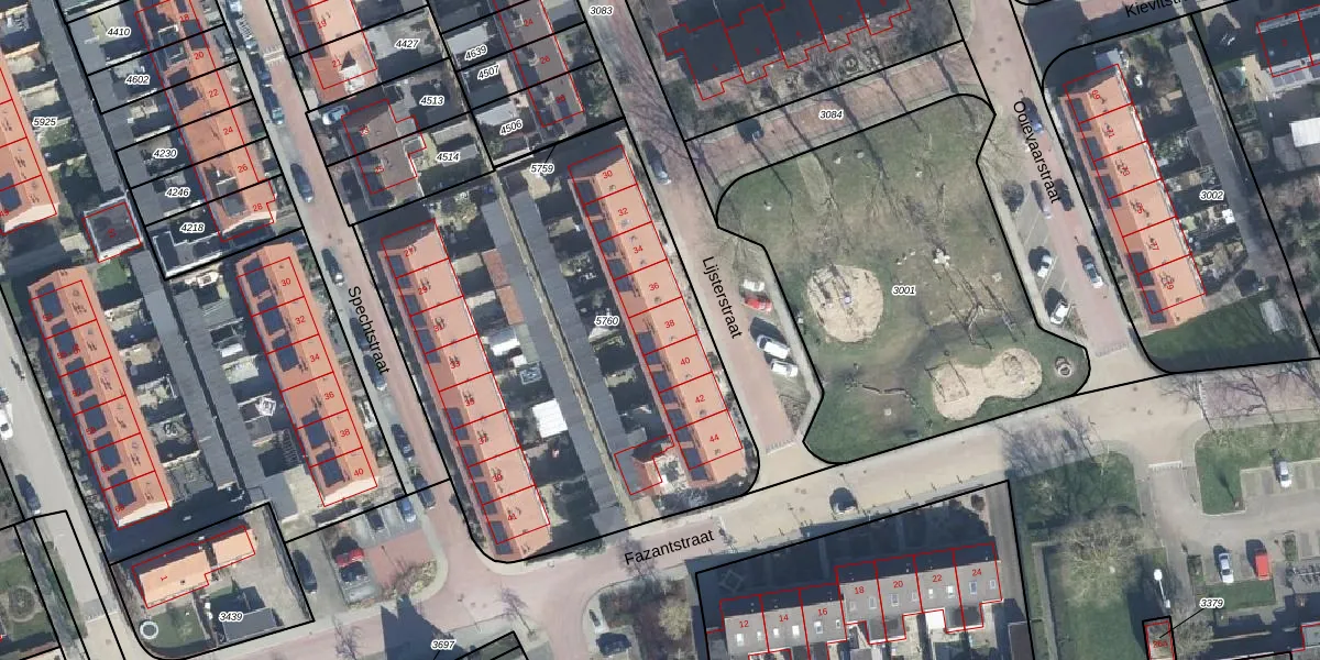 Het perceel waarop Lijsterstraat 38 staat heeft een oppervlakte van 2597 m². Dit is een zeer groot perceel. De perceeloppervlakte wordt geregistreerd door het Kadaster. Gedetailleerde informatie over de maten van dit perceel kunt u vinden in het rapport Kadastrale kaart met maatvoering van Lijsterstraat 38.