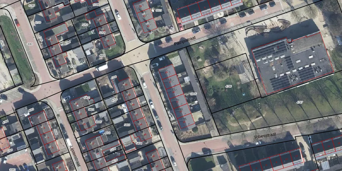 Het perceel waarop Ooievaarstraat 47 staat heeft een oppervlakte van 1290 m². Dit is een zeer groot perceel. De perceeloppervlakte wordt geregistreerd door het Kadaster. Gedetailleerde informatie over de maten van dit perceel kunt u vinden in het rapport Kadastrale kaart met maatvoering van Ooievaarstraat 47.
