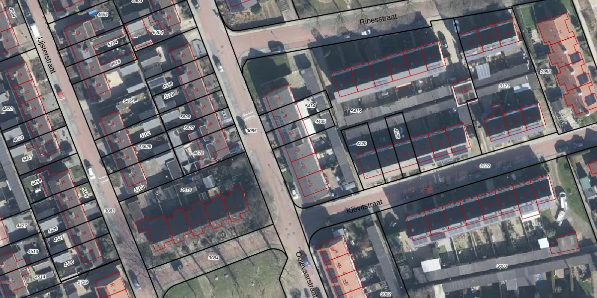 Het perceel waarop Ooievaarstraat 63 staat heeft een oppervlakte van 2842 m². Dit is een zeer groot perceel. De perceeloppervlakte wordt geregistreerd door het Kadaster. Gedetailleerde informatie over de maten van dit perceel kunt u vinden in het rapport Kadastrale kaart met maatvoering van Ooievaarstraat 63.