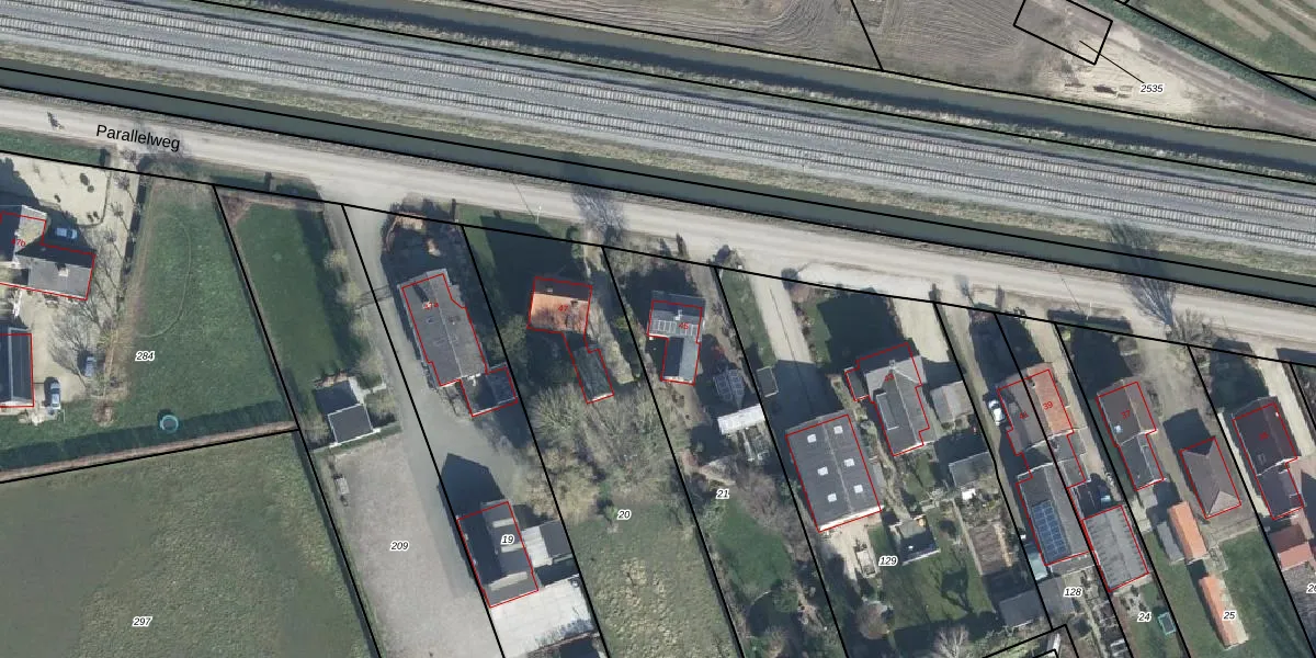 Parallelweg 45 is gelegen op kadastraal perceel OHD00D21. Deze kadastrale aanduiding is uniek en wordt gebruikt door het Kadaster om eigendomsrechten en andere zakelijke rechten vast te leggen. Het perceel maakt onderdeel uit van de kadastrale gemeente Opheusden.