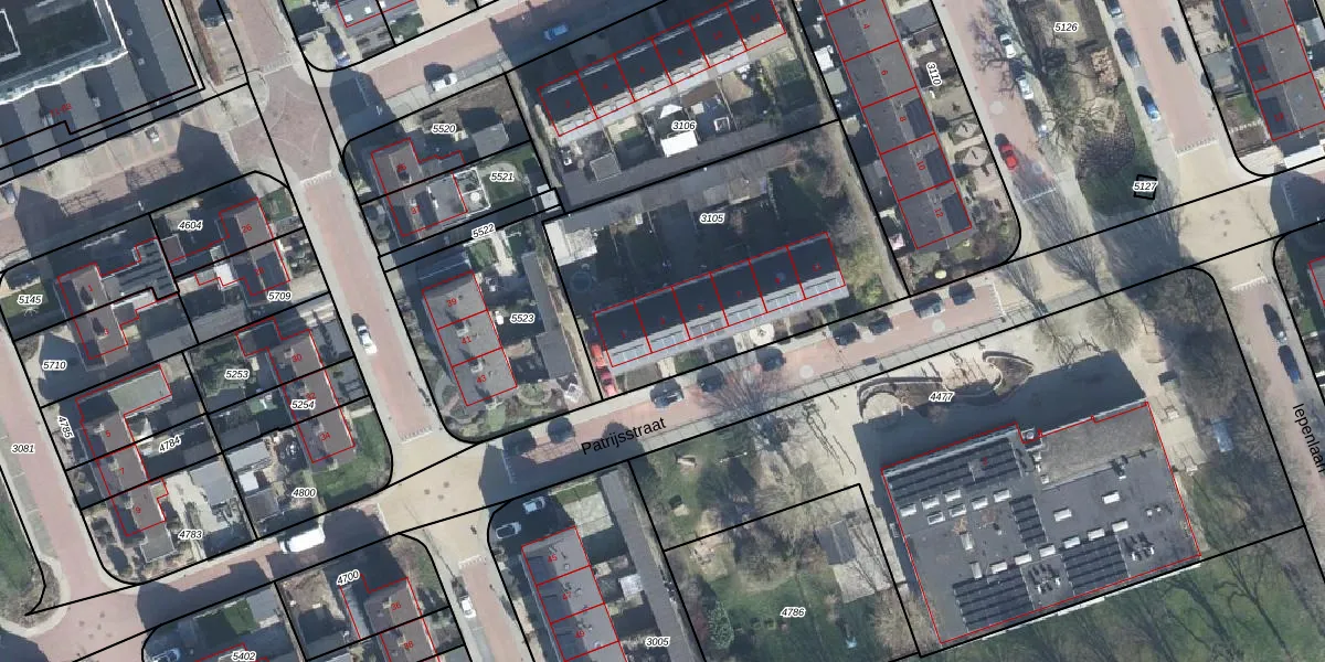 Het perceel waarop Patrijsstraat 3 staat heeft een oppervlakte van 1400 m². Dit is een zeer groot perceel. De perceeloppervlakte wordt geregistreerd door het Kadaster. Gedetailleerde informatie over de maten van dit perceel kunt u vinden in het rapport Kadastrale kaart met maatvoering van Patrijsstraat 3.