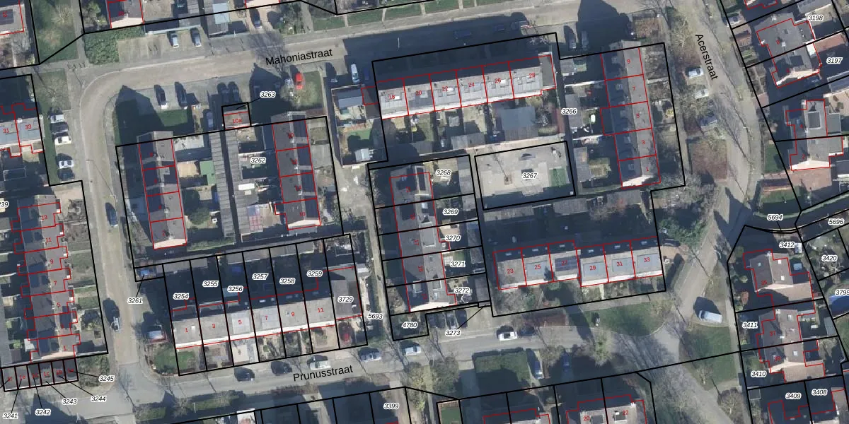 Prunusstraat 19 is gelegen op kadastraal perceel OHD00C3269. Deze kadastrale aanduiding is uniek en wordt gebruikt door het Kadaster om eigendomsrechten en andere zakelijke rechten vast te leggen. Het perceel maakt onderdeel uit van de kadastrale gemeente Opheusden.