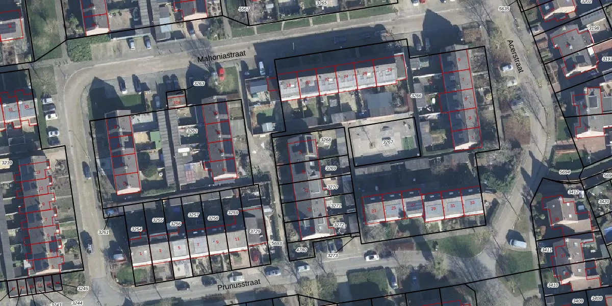 Gebruik de zoekbalk of klik op een perceel voor informatie over de adressen binnen dit perceel.