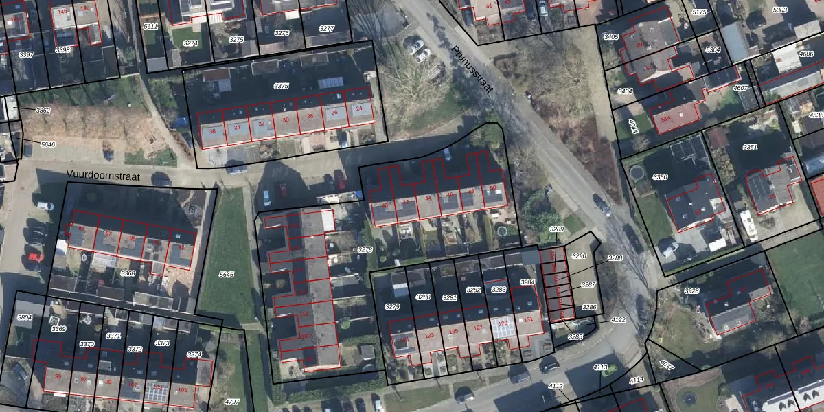 Prunusstraat 42 is gelegen op kadastraal perceel OHD00C3278. Deze kadastrale aanduiding is uniek en wordt gebruikt door het Kadaster om eigendomsrechten en andere zakelijke rechten vast te leggen. Het perceel maakt onderdeel uit van de kadastrale gemeente Opheusden.
