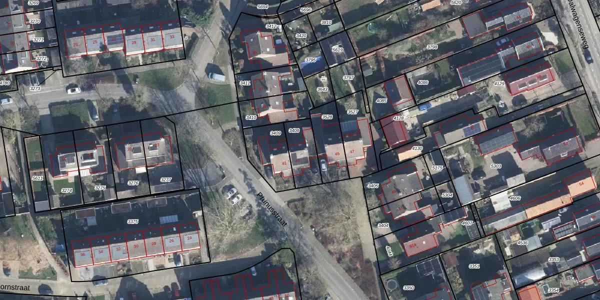 Gebruik de zoekbalk of klik op een perceel voor informatie over de adressen binnen dit perceel.