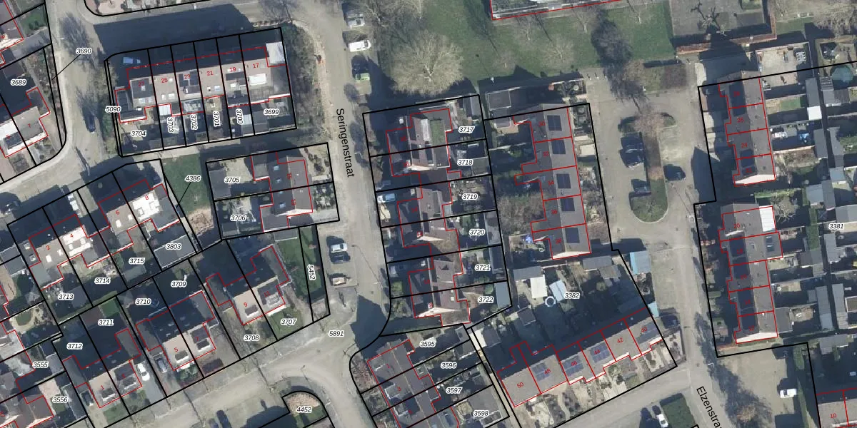 Gebruik de zoekbalk of klik op een perceel voor informatie over de adressen binnen dit perceel.