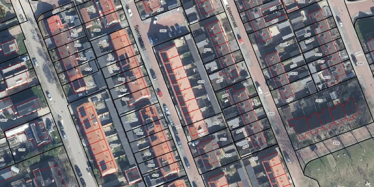 Het perceel waarop Spechtstraat 15 staat heeft een oppervlakte van 1054 m². Dit is een zeer groot perceel. De perceeloppervlakte wordt geregistreerd door het Kadaster. Gedetailleerde informatie over de maten van dit perceel kunt u vinden in het rapport Kadastrale kaart met maatvoering van Spechtstraat 15.