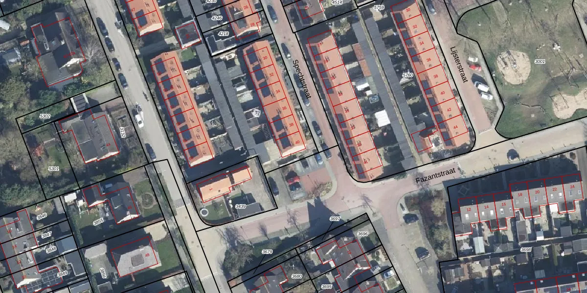 Het perceel waarop Spechtstraat 40 staat heeft een oppervlakte van 3367 m². Dit is een zeer groot perceel. De perceeloppervlakte wordt geregistreerd door het Kadaster. Gedetailleerde informatie over de maten van dit perceel kunt u vinden in het rapport Kadastrale kaart met maatvoering van Spechtstraat 40.