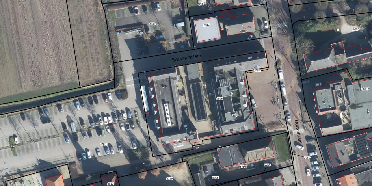 Het perceel waarop Swaenenstate 15 staat heeft een oppervlakte van 2595 m². Dit is een zeer groot perceel. De perceeloppervlakte wordt geregistreerd door het Kadaster. Gedetailleerde informatie over de maten van dit perceel kunt u vinden in het rapport Kadastrale kaart met maatvoering van Swaenenstate 15.