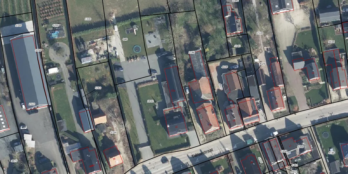 Het perceel waarop Tielsestraat 32-a staat heeft een oppervlakte van 2270 m². Dit is een zeer groot perceel. De perceeloppervlakte wordt geregistreerd door het Kadaster. Gedetailleerde informatie over de maten van dit perceel kunt u vinden in het rapport Kadastrale kaart met maatvoering van Tielsestraat 32-a.