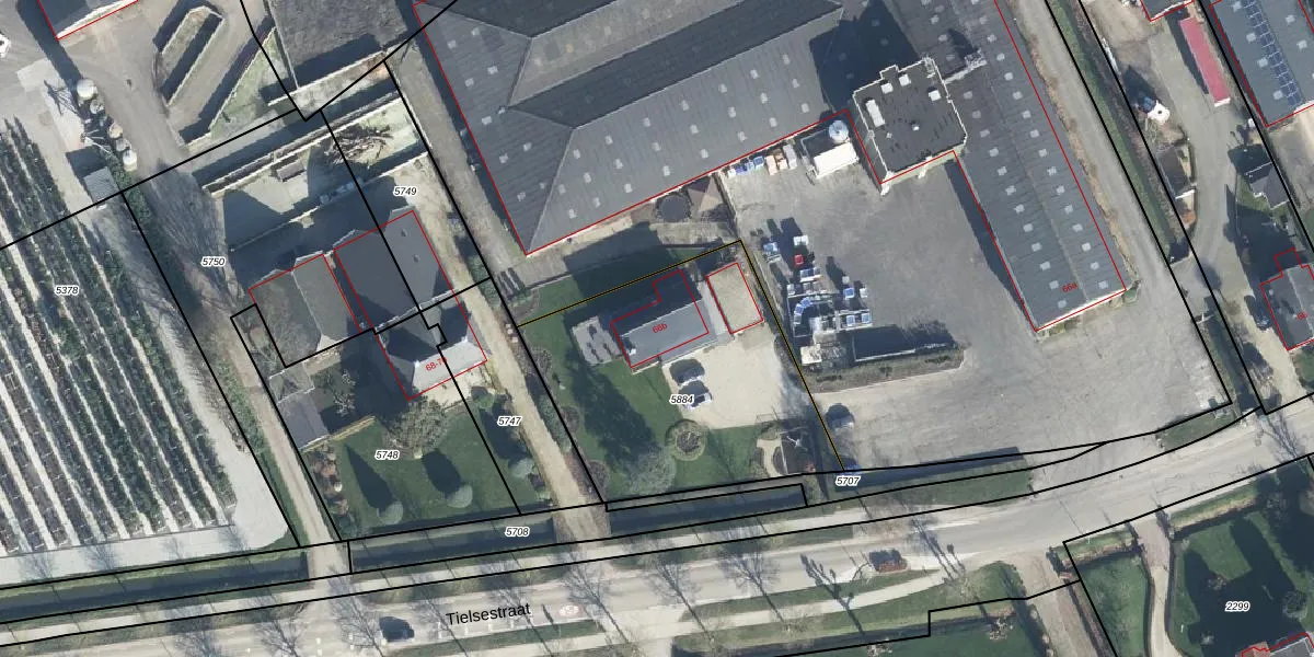 Het perceel waarop Tielsestraat 66-b staat heeft een oppervlakte van 1204 m². Dit is een zeer groot perceel. De perceeloppervlakte wordt geregistreerd door het Kadaster. Gedetailleerde informatie over de maten van dit perceel kunt u vinden in het rapport Kadastrale kaart met maatvoering van Tielsestraat 66-b.