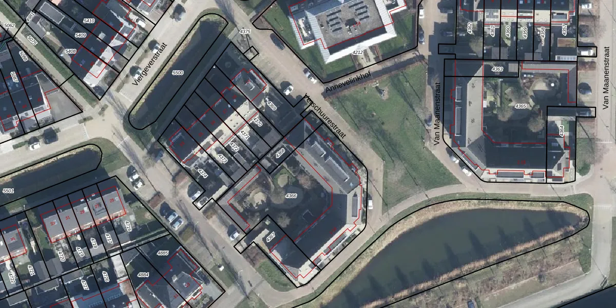 Het perceel waarop Verschuurestraat 7 staat heeft een oppervlakte van 1254 m². Dit is een zeer groot perceel. De perceeloppervlakte wordt geregistreerd door het Kadaster. Gedetailleerde informatie over de maten van dit perceel kunt u vinden in het rapport Kadastrale kaart met maatvoering van Verschuurestraat 7.