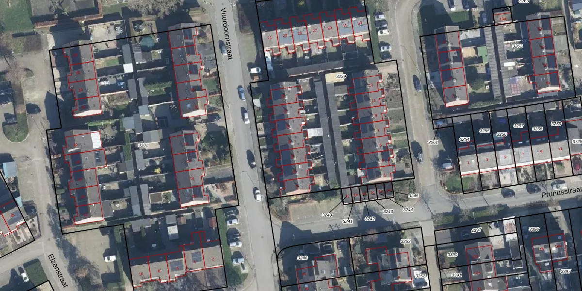 Het perceel waarop Vuurdoornstraat 41 staat heeft een oppervlakte van 3058 m². Dit is een zeer groot perceel. De perceeloppervlakte wordt geregistreerd door het Kadaster. Gedetailleerde informatie over de maten van dit perceel kunt u vinden in het rapport Kadastrale kaart met maatvoering van Vuurdoornstraat 41.
