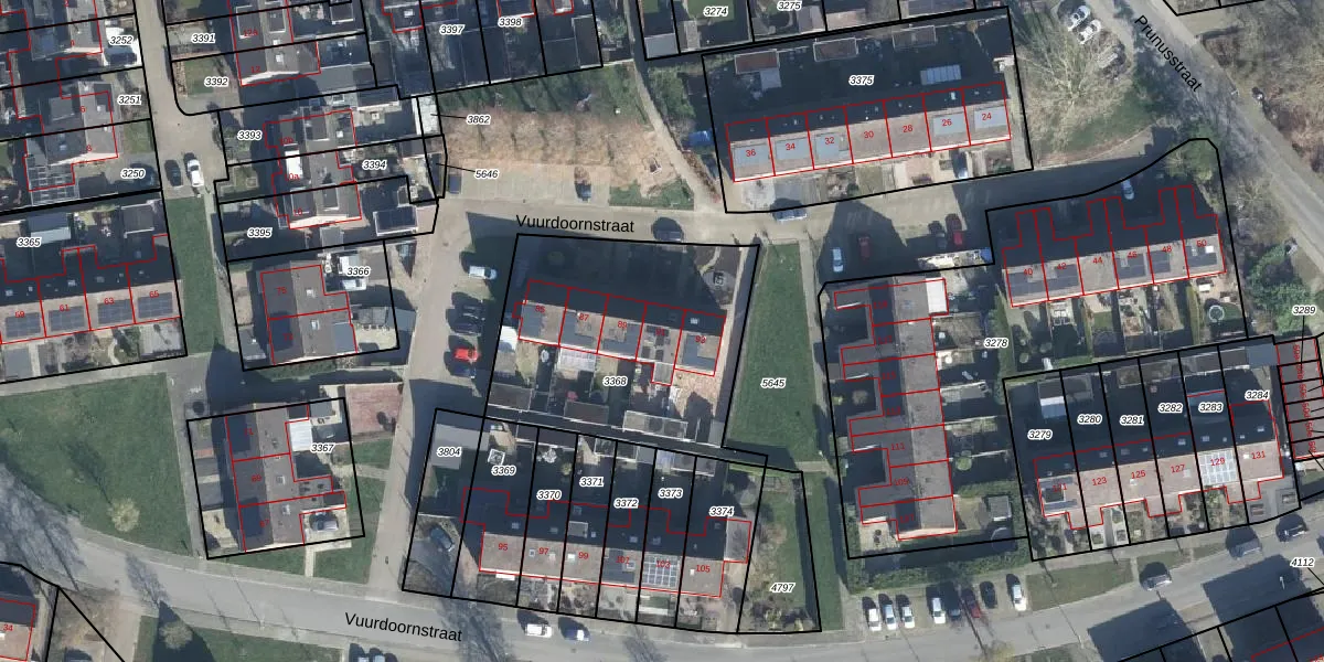 Het perceel waarop Vuurdoornstraat 91 staat heeft een oppervlakte van 1090 m². Dit is een zeer groot perceel. De perceeloppervlakte wordt geregistreerd door het Kadaster. Gedetailleerde informatie over de maten van dit perceel kunt u vinden in het rapport Kadastrale kaart met maatvoering van Vuurdoornstraat 91.