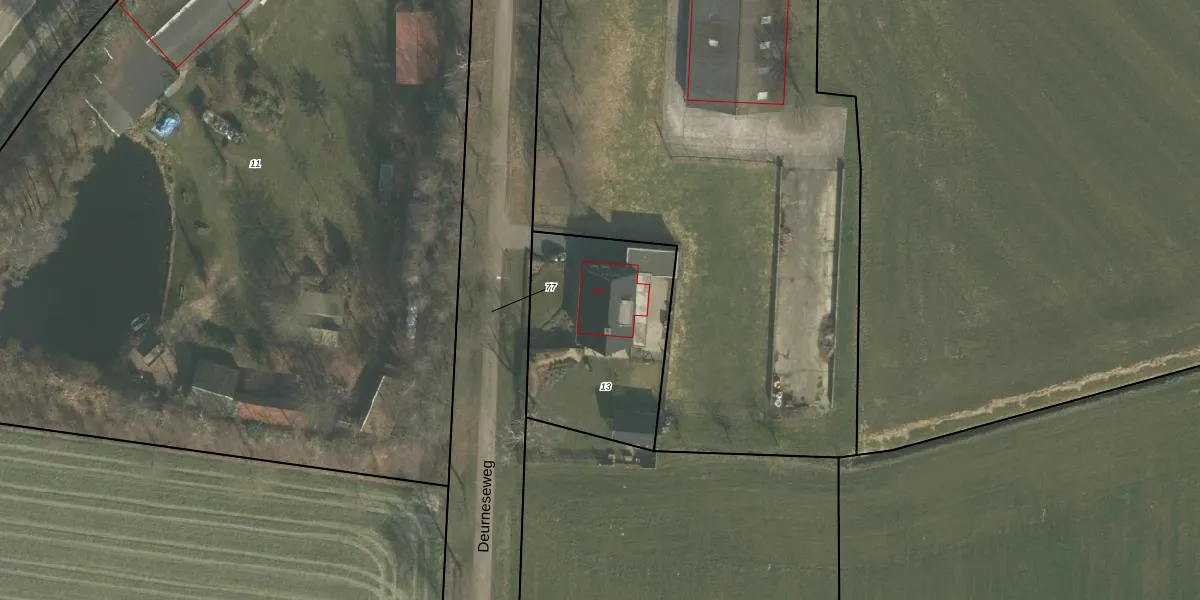 Deurneseweg 12-A is gelegen op kadastraal perceel OLO00N13. Deze kadastrale aanduiding is uniek en wordt gebruikt door het Kadaster om eigendomsrechten en andere zakelijke rechten vast te leggen. Het perceel maakt onderdeel uit van de kadastrale gemeente Oploo.