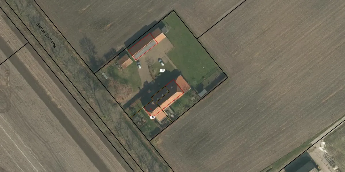 Eerste Stichting 6 is gelegen op kadastraal perceel OLO00P113. Deze kadastrale aanduiding is uniek en wordt gebruikt door het Kadaster om eigendomsrechten en andere zakelijke rechten vast te leggen. Het perceel maakt onderdeel uit van de kadastrale gemeente Oploo.