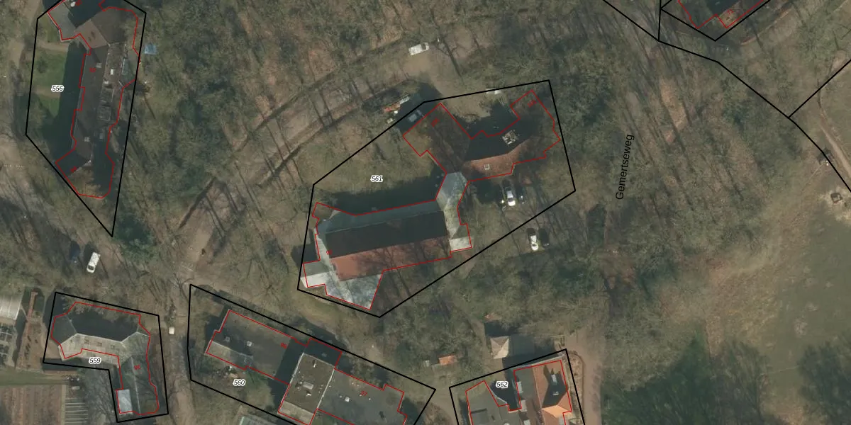 Gemertseweg 100 is gelegen op kadastraal perceel OLO00D561. Deze kadastrale aanduiding is uniek en wordt gebruikt door het Kadaster om eigendomsrechten en andere zakelijke rechten vast te leggen. Het perceel maakt onderdeel uit van de kadastrale gemeente Oploo.