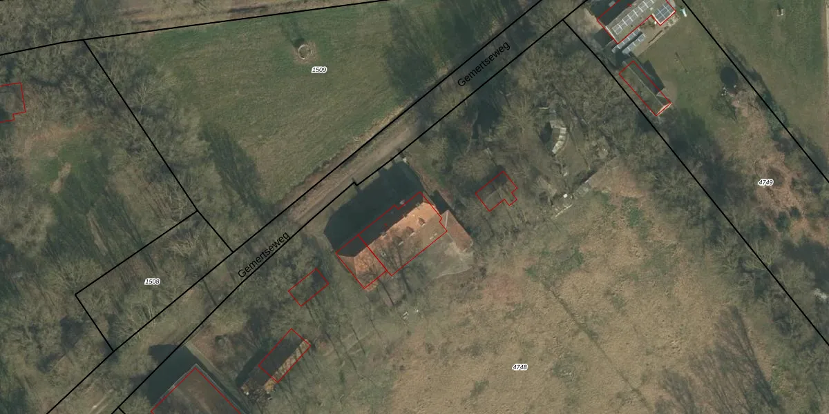 Het perceel waarop Gemertseweg 7 staat heeft een oppervlakte van 1,6 ha. Dit is een zeer groot perceel. De perceeloppervlakte wordt geregistreerd door het Kadaster. Gedetailleerde informatie over de maten van dit perceel kunt u vinden in het rapport Kadastrale kaart met maatvoering van Gemertseweg 7.