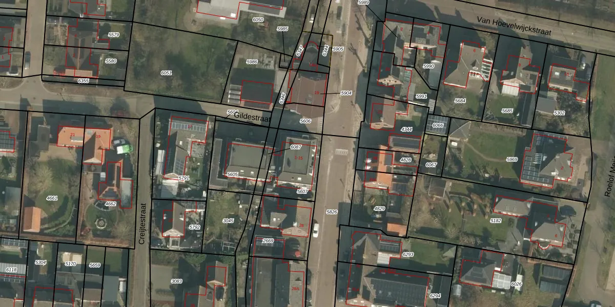 Gildestraat 1 is gelegen op kadastraal perceel OLO00C5607. Deze kadastrale aanduiding is uniek en wordt gebruikt door het Kadaster om eigendomsrechten en andere zakelijke rechten vast te leggen. Het perceel maakt onderdeel uit van de kadastrale gemeente Oploo.