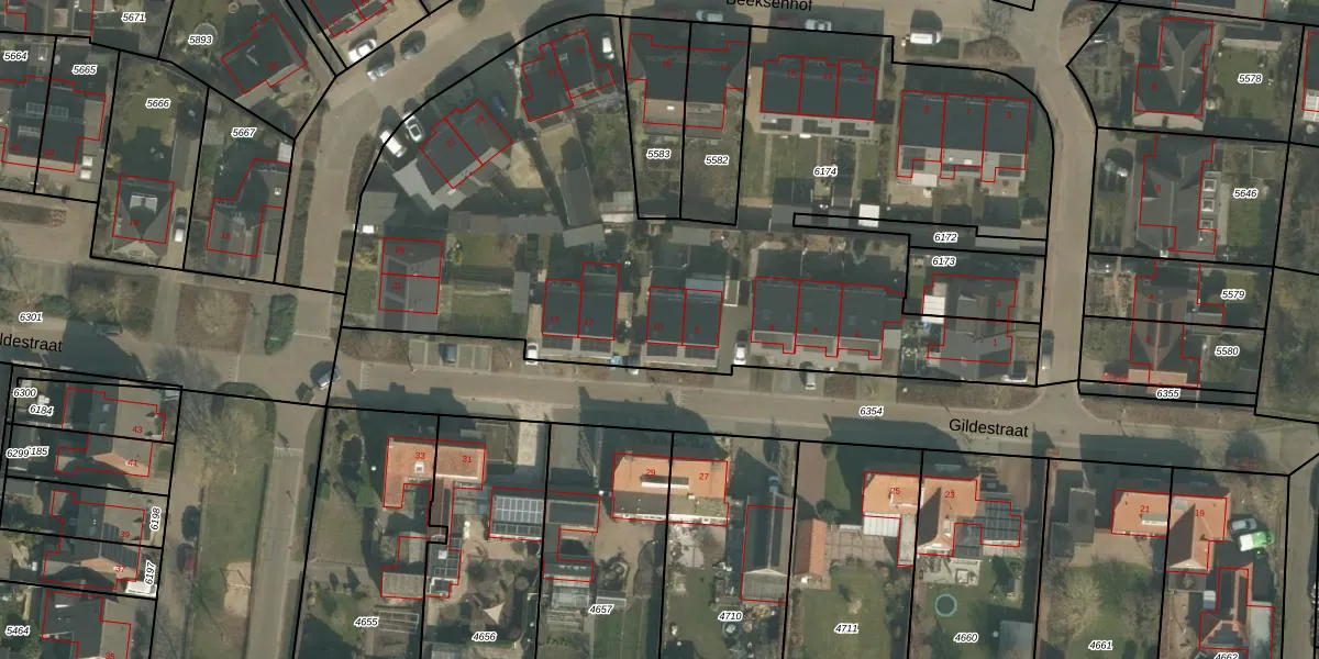 Gildestraat 10 is gelegen op kadastraal perceel OLO00C6174. Deze kadastrale aanduiding is uniek en wordt gebruikt door het Kadaster om eigendomsrechten en andere zakelijke rechten vast te leggen. Het perceel maakt onderdeel uit van de kadastrale gemeente Oploo.